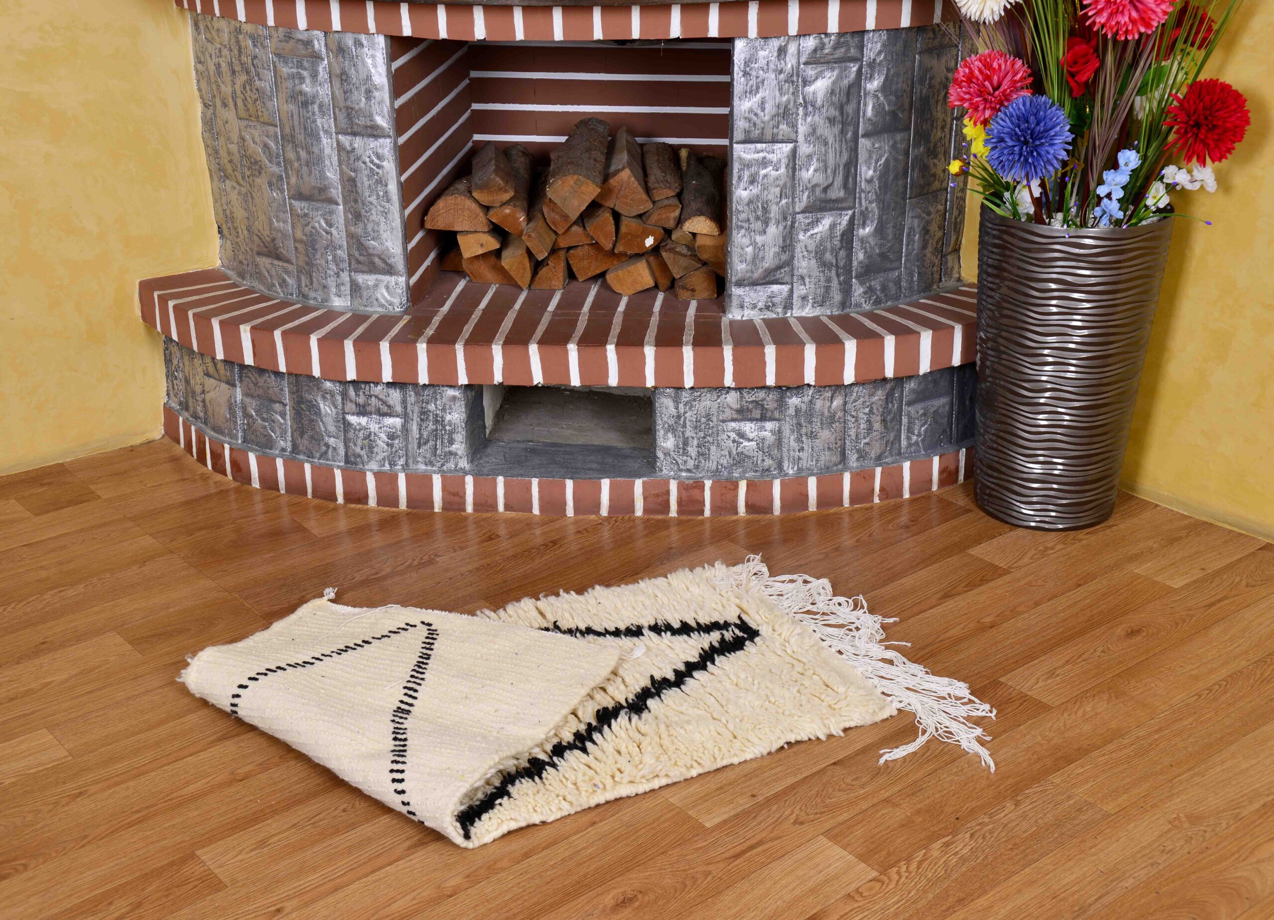 Azilal rugs, named after the Azilal region in Morocco, are renowned for their abstract designs and bright, colorful patterns. Made from raw sheep’s wool mixed with cotton or primarily cotton, they feature a medium to short pile due to the sharper wool used, making them less dense than Beni Ourain rugs but equally soft and comfortable. The natural base color of these rugs is typically white or cream, reflecting the natural hue of the wool. Azilal rugs are perfect for any home style—whether minimalist, traditional, or modern—and fit any occasion, from weddings and baby showers to birthday parties.