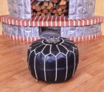 Introducing our exquisite moroccan ottomans leather pouf a statement piece handcrafted with passion and precision. Made from 100% authentic soft leather, this 20″ Unstuffed Round Ottoman is a testament to Moroccan artistry, featuring a captivating embroidery on the top that adds an extra layer of charm.